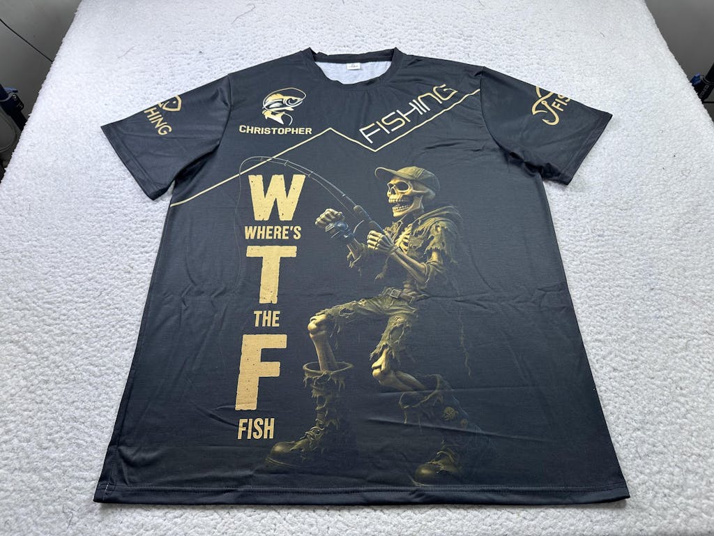 I bought two shirts, the one with the skeleton fishing, saying: "Where's the Fish", and one with the Sasquatch going fishing in Xl size, and they fit and feel great! Best buy I've made ina long time. Also, my friends really liked the shirtws!
