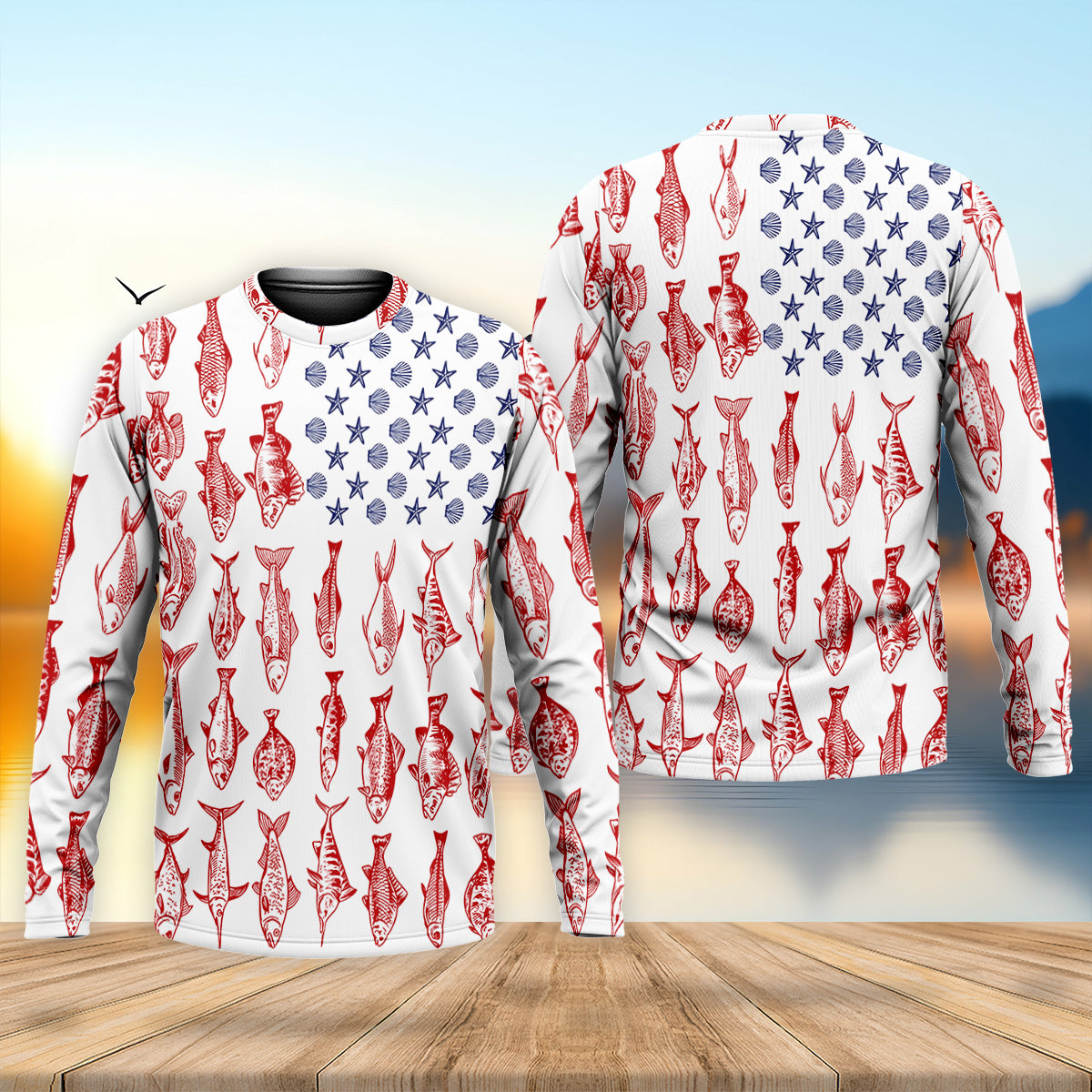 American Flag Fish Shirt, Fishing SPF Shirt, Mens Fishing Shirts Long Sleeve, Gift For Fisherman