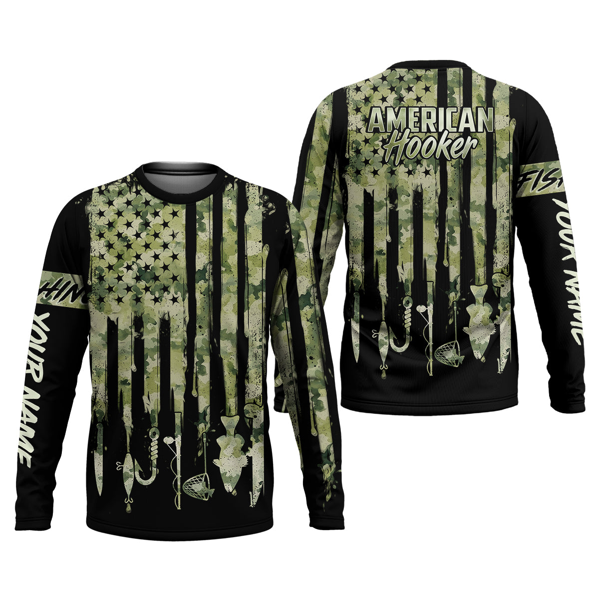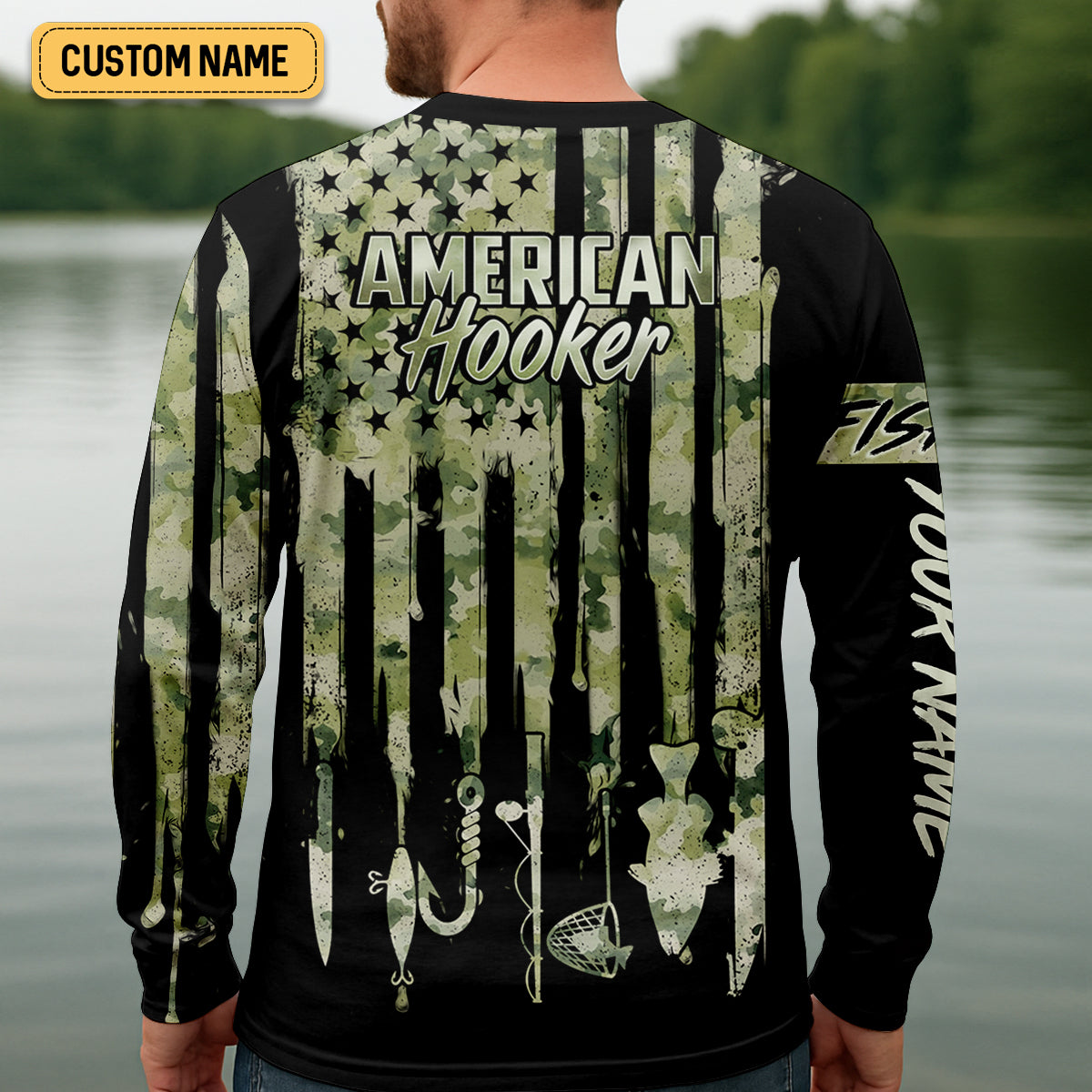 American Hooker Patriotic Fishing Shirt, Camo Fishing Shirt, SPF Shirt For Men, Gift For Fisherman