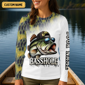 Basshole Kiss My Bass Fishing UPF Shirts, Funny Fishing Shirt, Fishing Shirt For Women