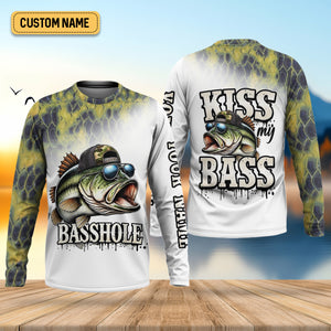 Basshole Kiss My Bass Fishing UPF Shirts, Funny Fishing Shirt, Fishing Shirts For Men