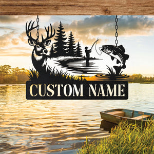 Custom Fishing and Hunting Personalized Metal Signs, Decorative Garden Stakes, Lake House Decor, Metal Stake