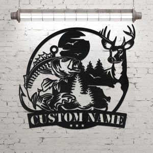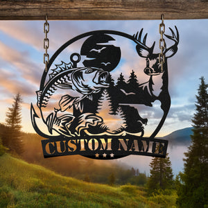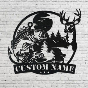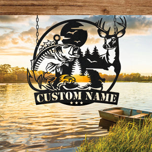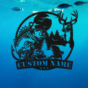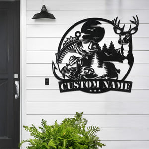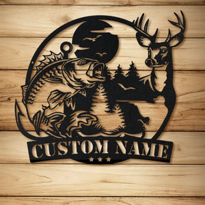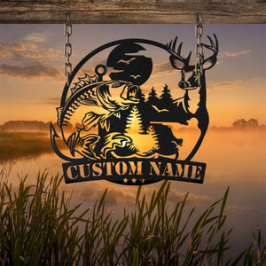 Deer Fish Hunting Backlit Metal Sign, Outdoor Metal Art, Gift for Hunters, Personalized Metal Signs