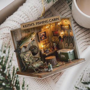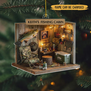 Fishing Cabin Custom Name Acrylic Ornament, Fishing Ornament, Christmas Tree Decor