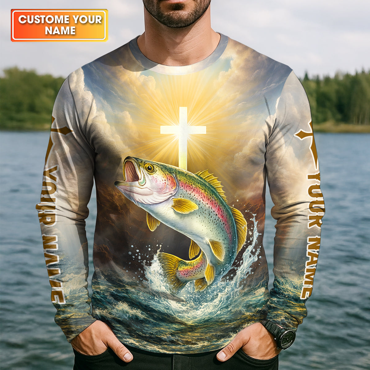Made with lightweight, breathable polyester, it's built to handle both sun and splash. The vibrant all-over print brings your fishing lifestyle to life, while the UV Protection UPF 30+ keeps your skin safe under the open sky. Whether you're casting from a boat or kicking back at the dock, this shirt is your go-to gear for comfort and style.