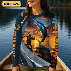 Made with lightweight, breathable polyester, it's built to handle both sun and splash. The vibrant all-over print brings your fishing lifestyle to life, while the UV Protection UPF 30+ keeps your skin safe under the open sky. Whether you're casting from a boat or kicking back at the dock, this shirt is your go-to gear for comfort and style.