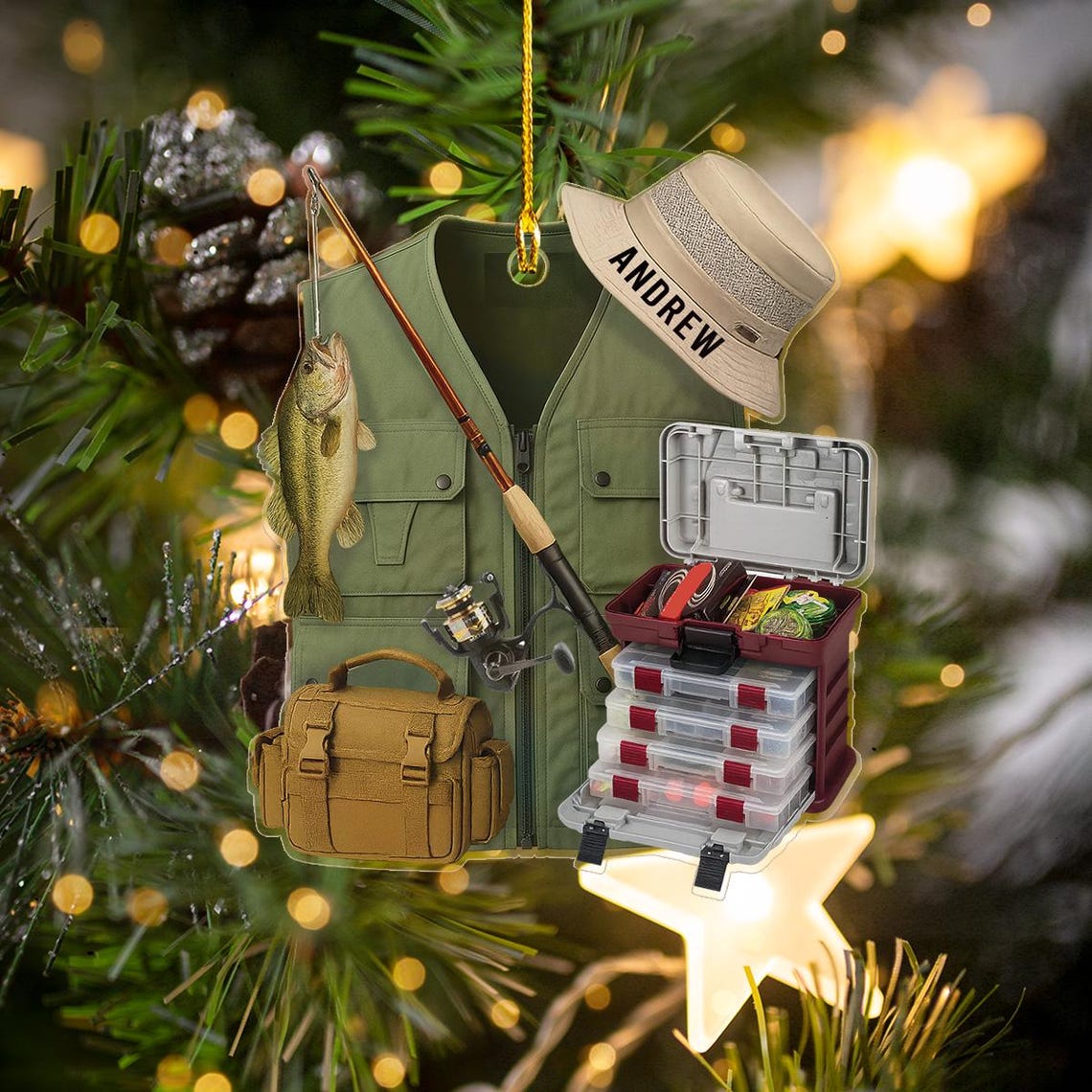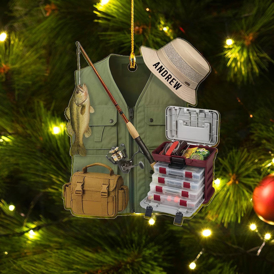 Fishing Ornament, Custom Acrylic Ornament, Gift For Fisherman, Christmas Tree Decor