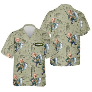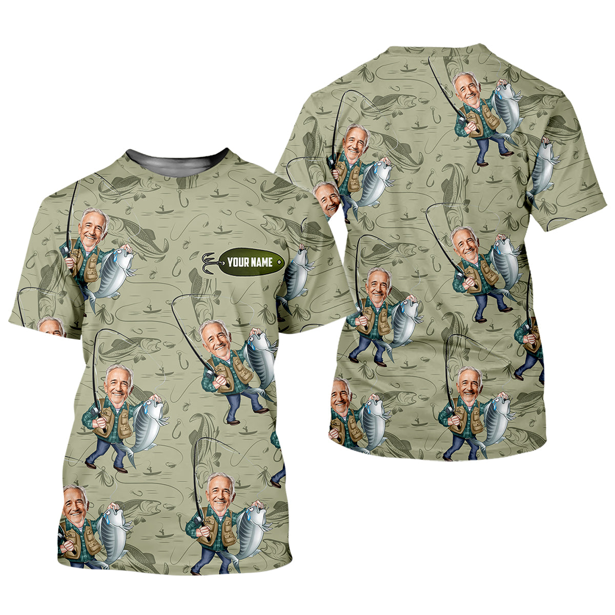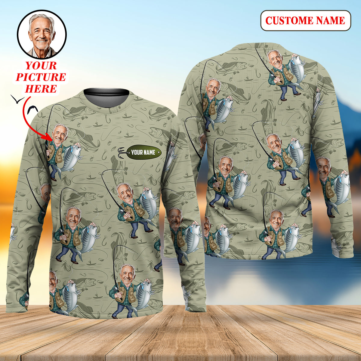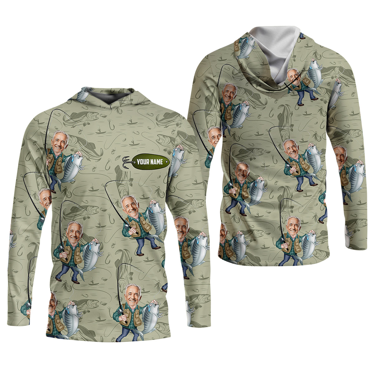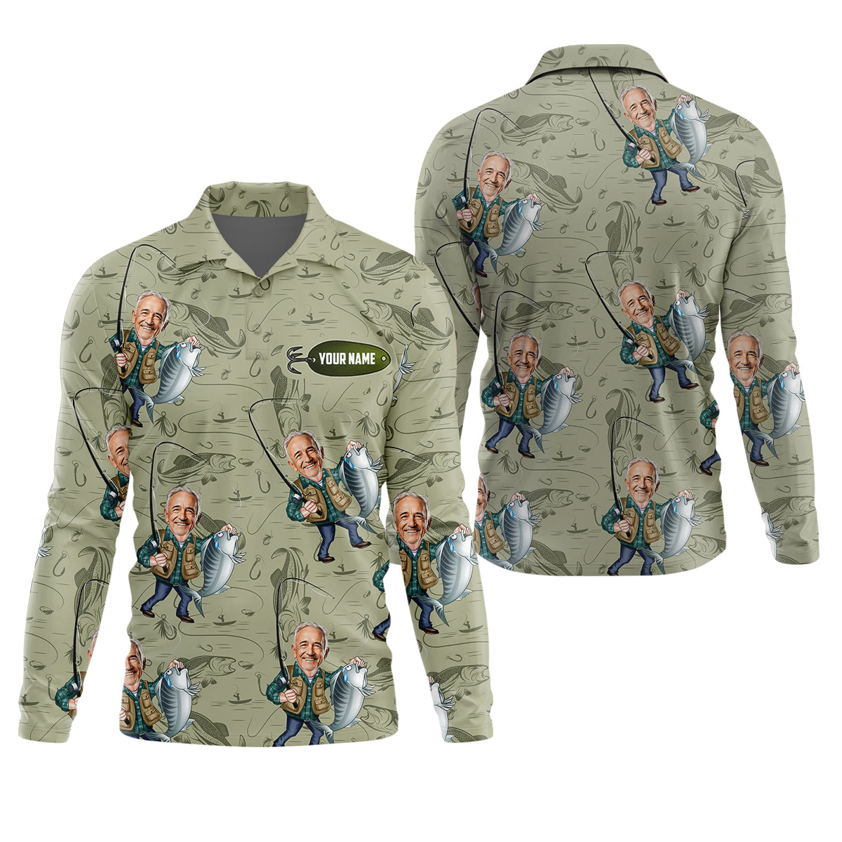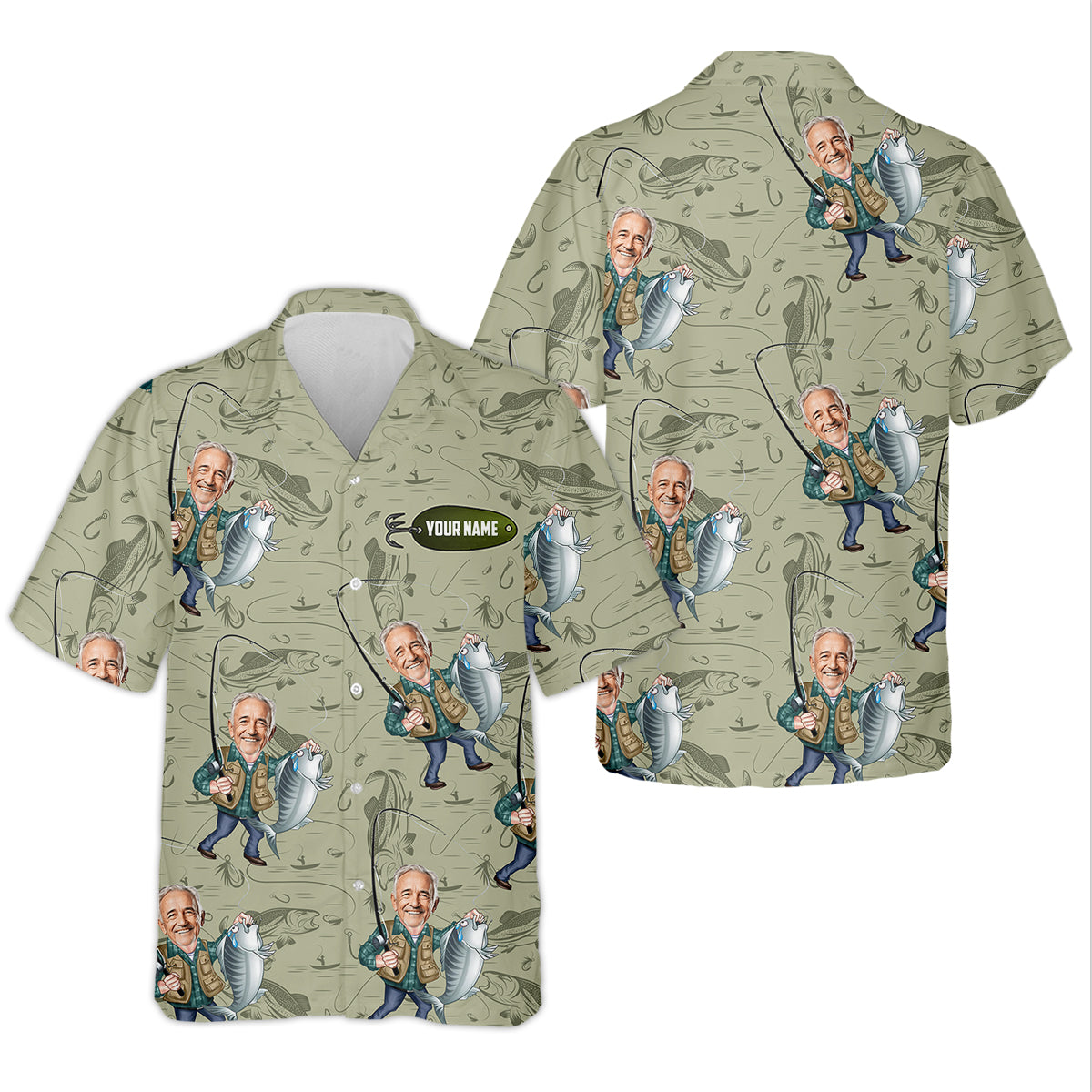 Funny Caricature Face Fishing Shirt, Funny Fishing Shirt, SPF Shirt, Fisherman Outfit, Mens Casual Shirts