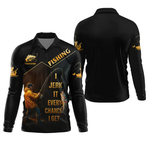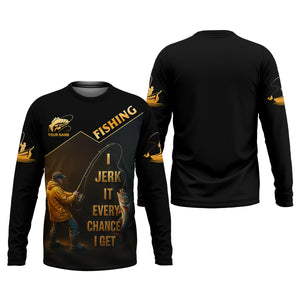 Funny Fishing T-Shirt I Jerk It Every Chance I Get Custom Name UPF Shirts, Men's Fishing Shirt