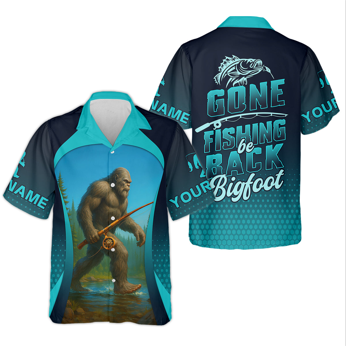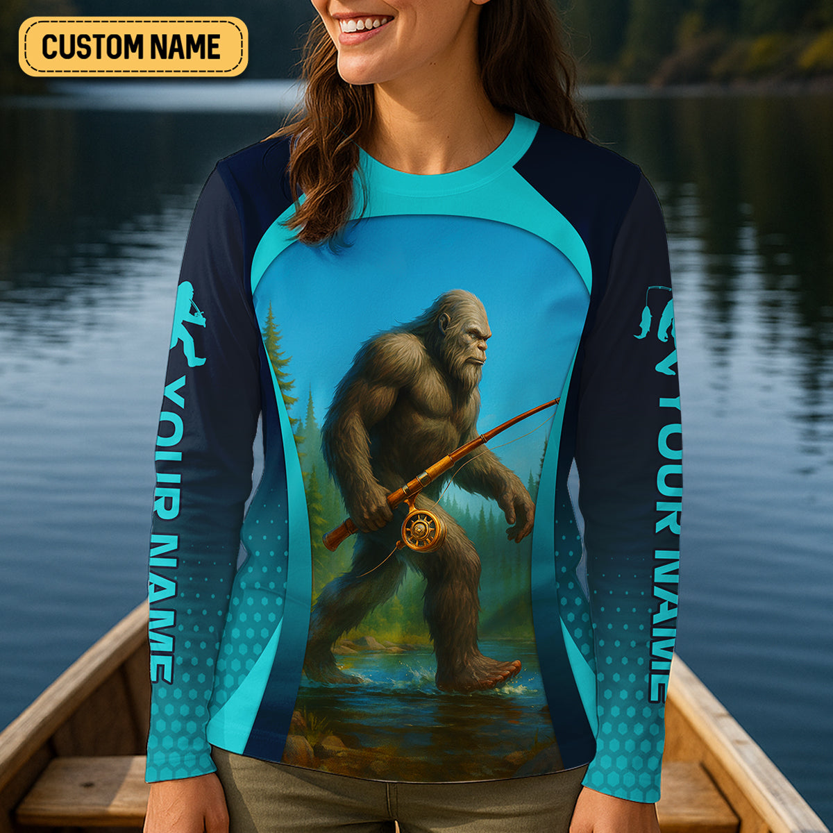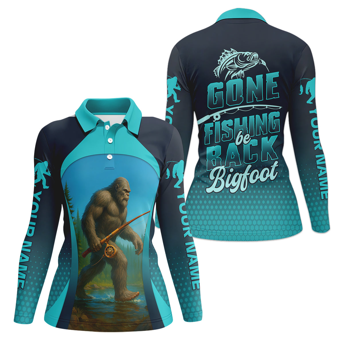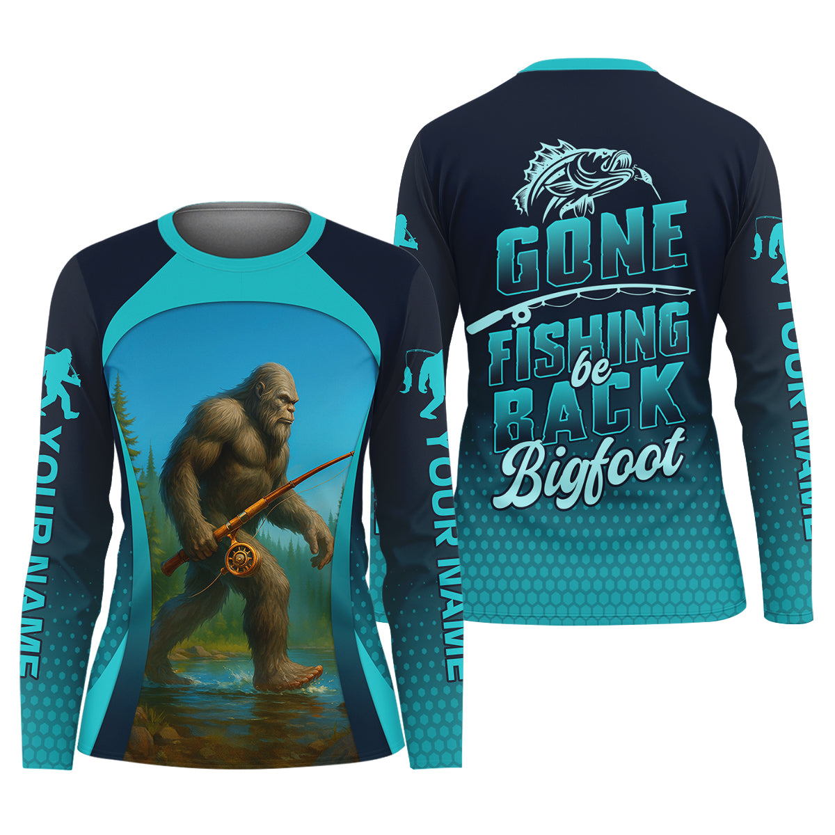 Gone Fishing Be Back Bigfoot Blue Fishing Shirt, SPF Long Sleeve Shirts Womens, Fishing Shirt For Women