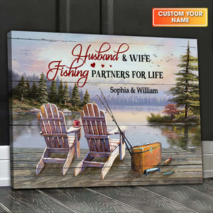 Husband And Wife Fishing Partners For Life Lake Side Canvas Wall Art, Valentines Fishing Custom Couple Gift
