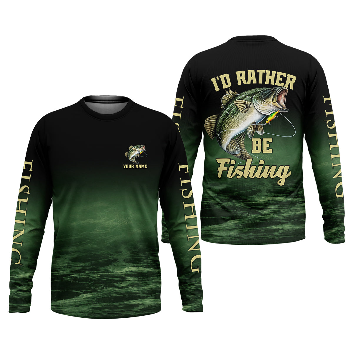 I’d Rather Be Fishing – Personalized Bass Fishing Shirt, Fishing UPF Shirts, Funny Fishing Shirt