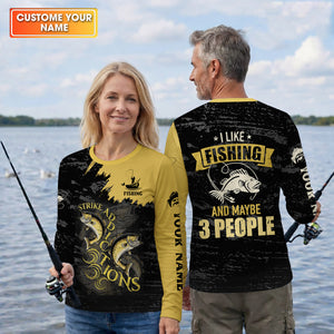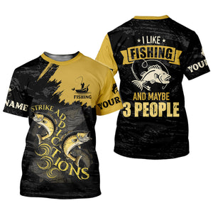 I Like Fishing And Maybe 3 People Shirt, Personalized Strike Addictions Bass Fishing Shirt For Men, Fishing UPF Shirts