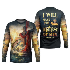 I Will Make You Fishers Of Men Shirt, Personalized Christian Fishing Long Sleeve, Fishing UPF Shirts, Trout Shirt