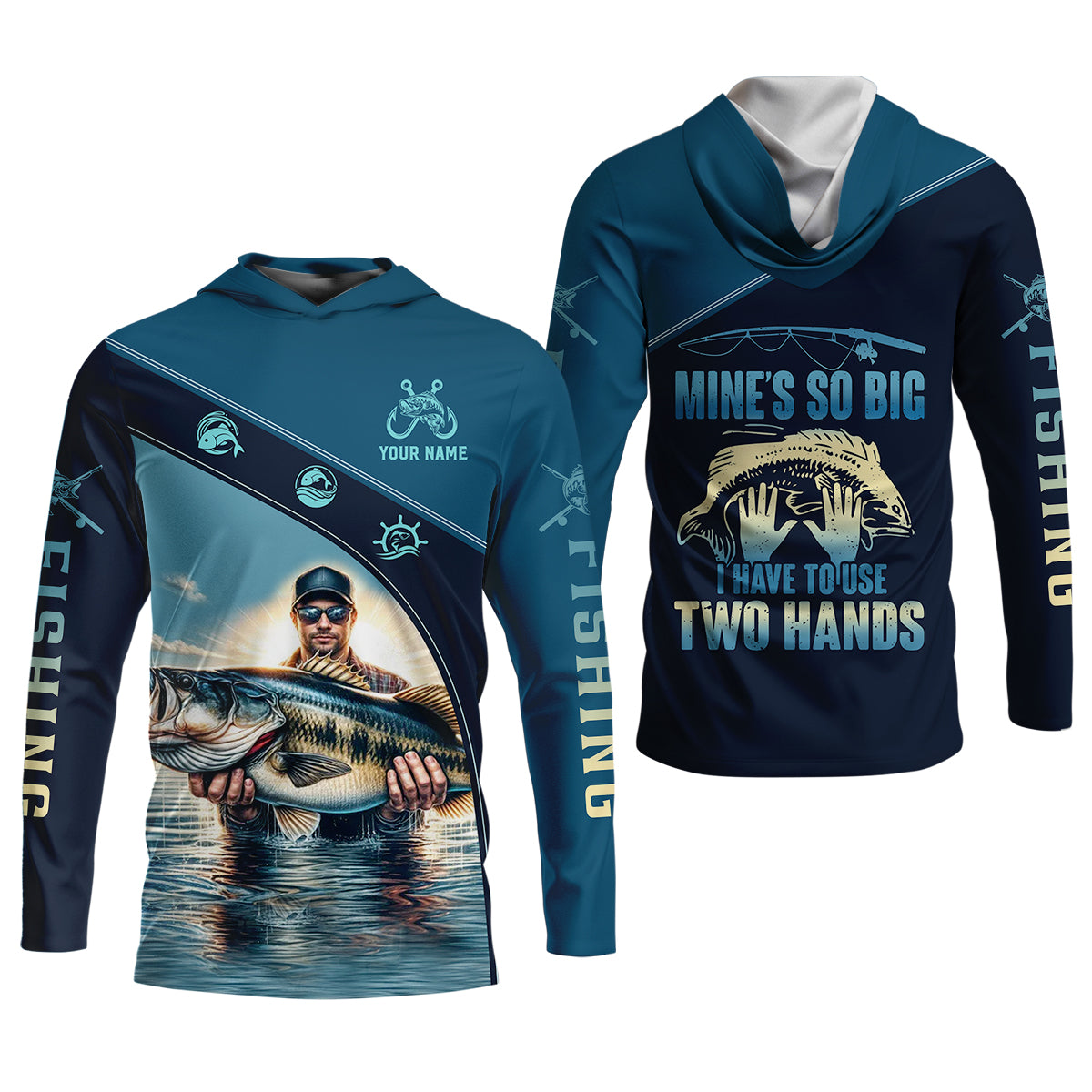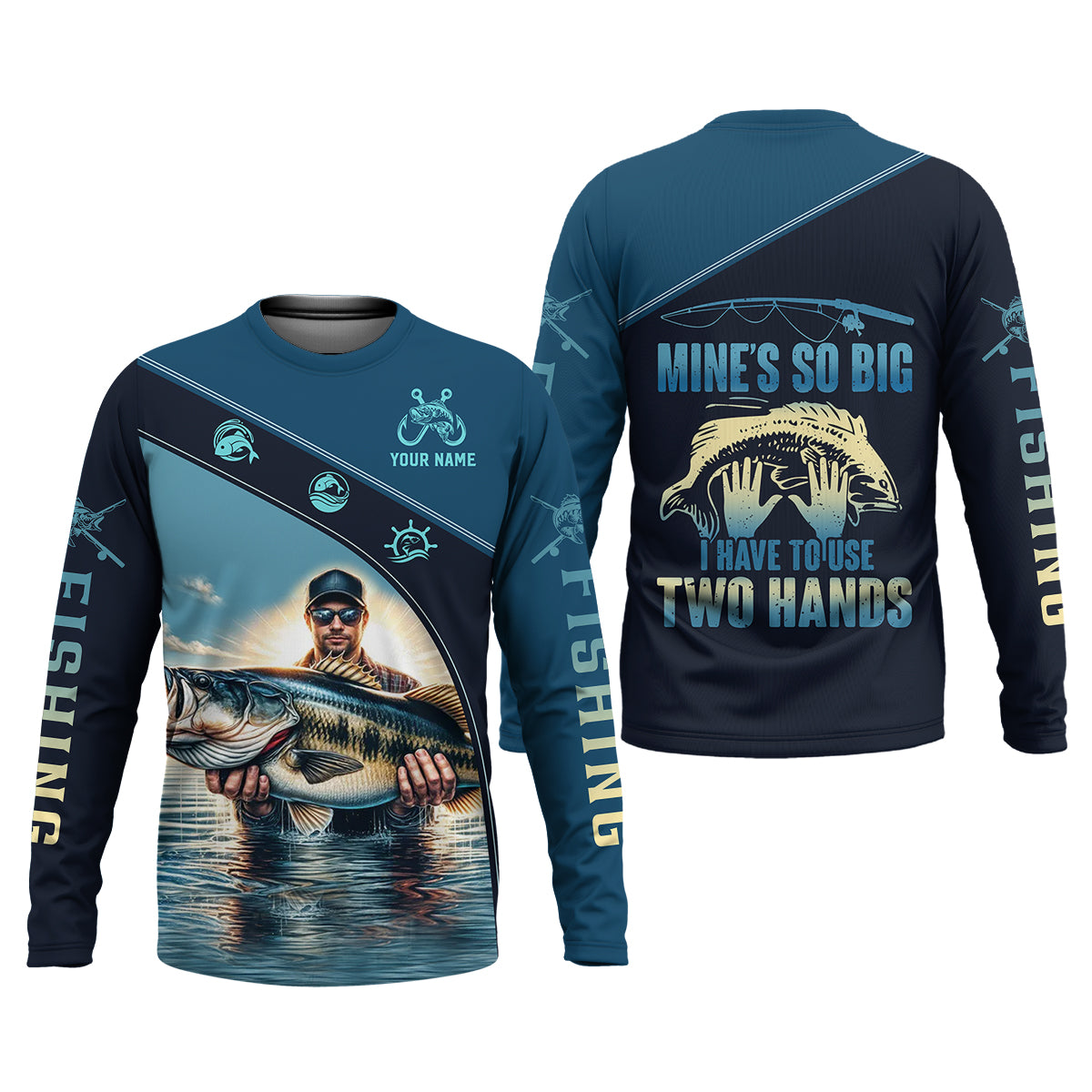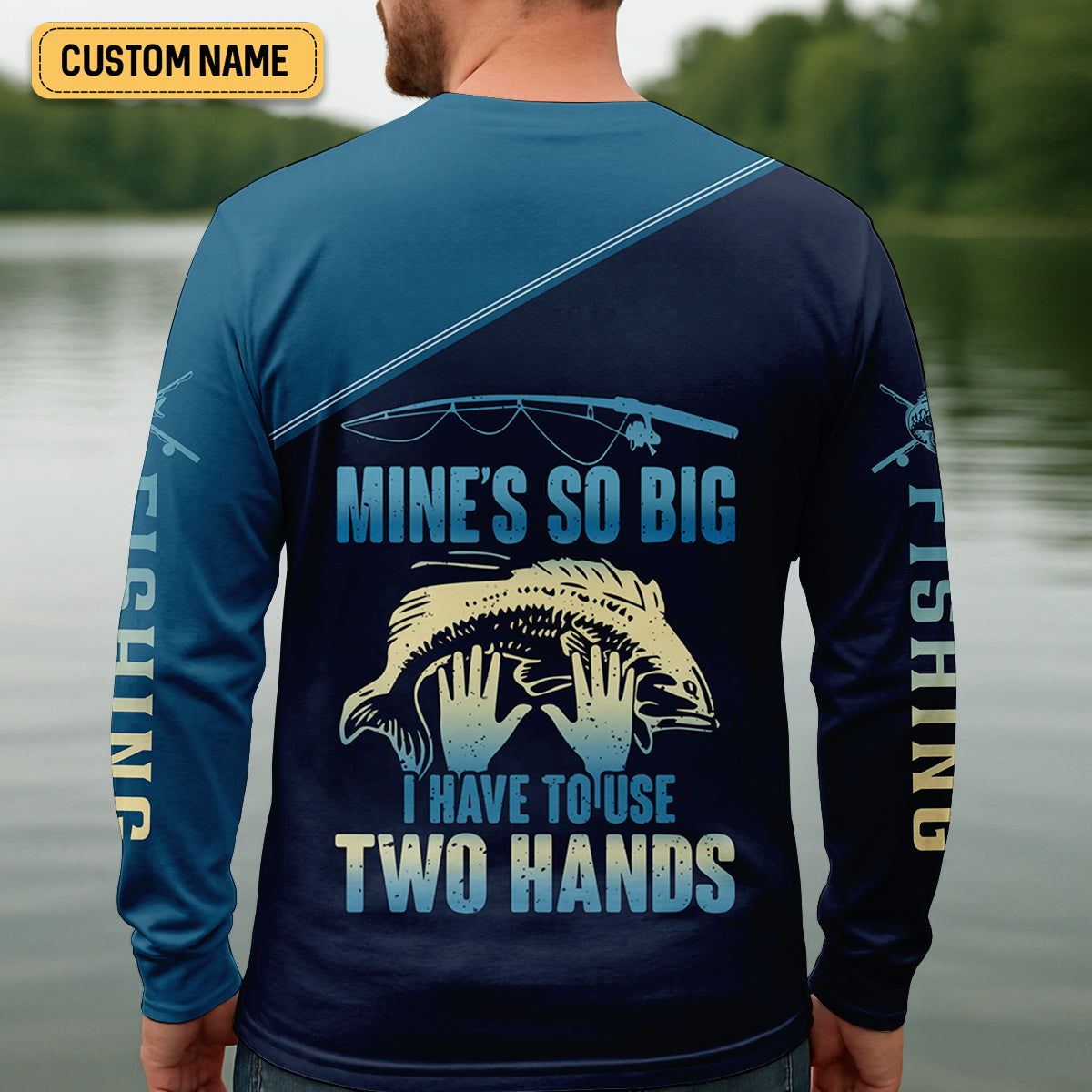 Mine's So Big I Have To Use Two Hands Funny Fishing Shirt, SPF Shirt For Men, Gift For Fisherman