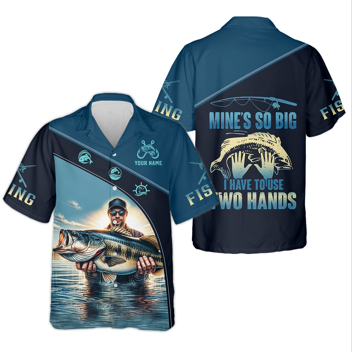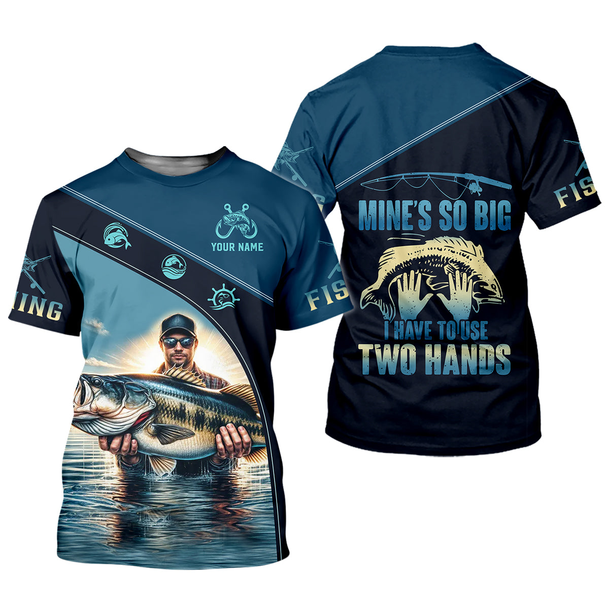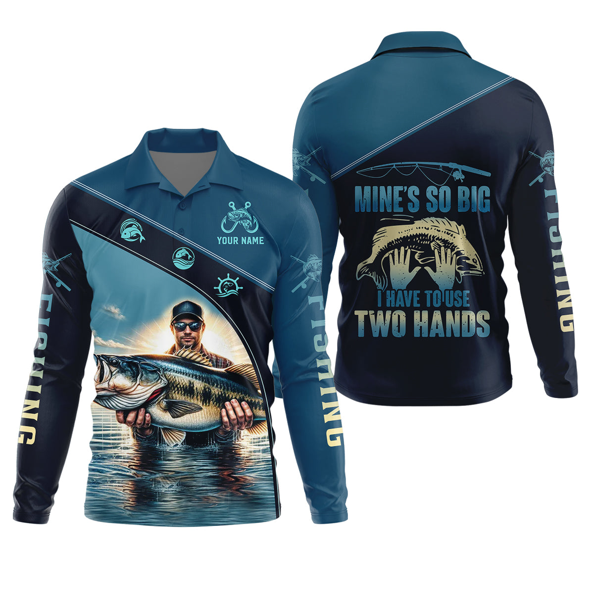 Mine's So Big I Have To Use Two Hands Funny Fishing Shirt, SPF Shirt For Men, Gift For Fisherman