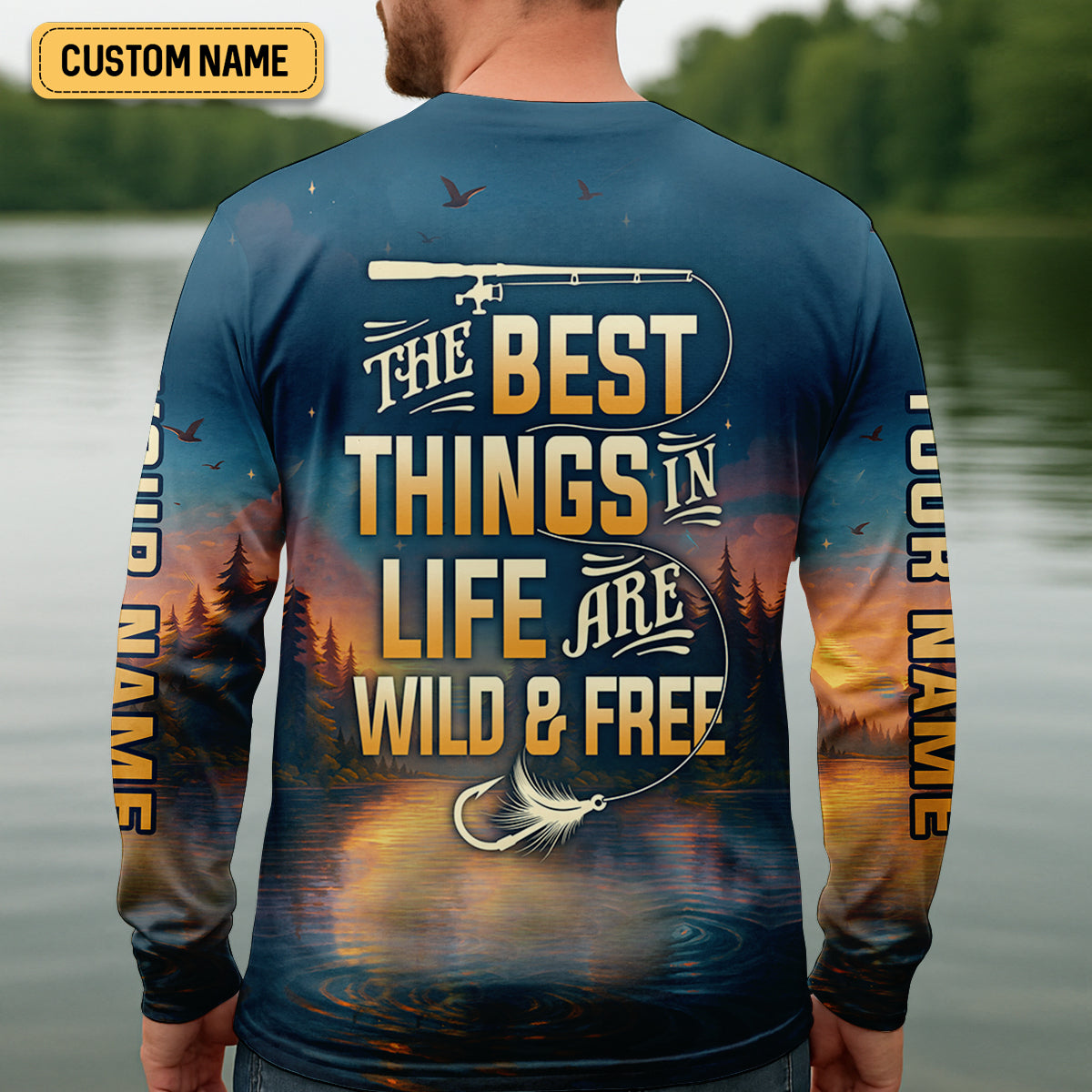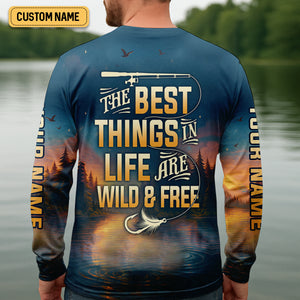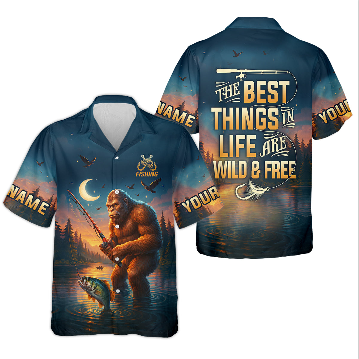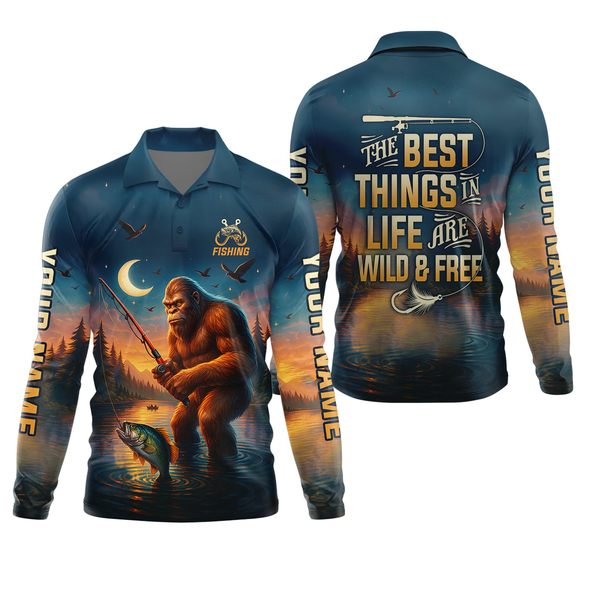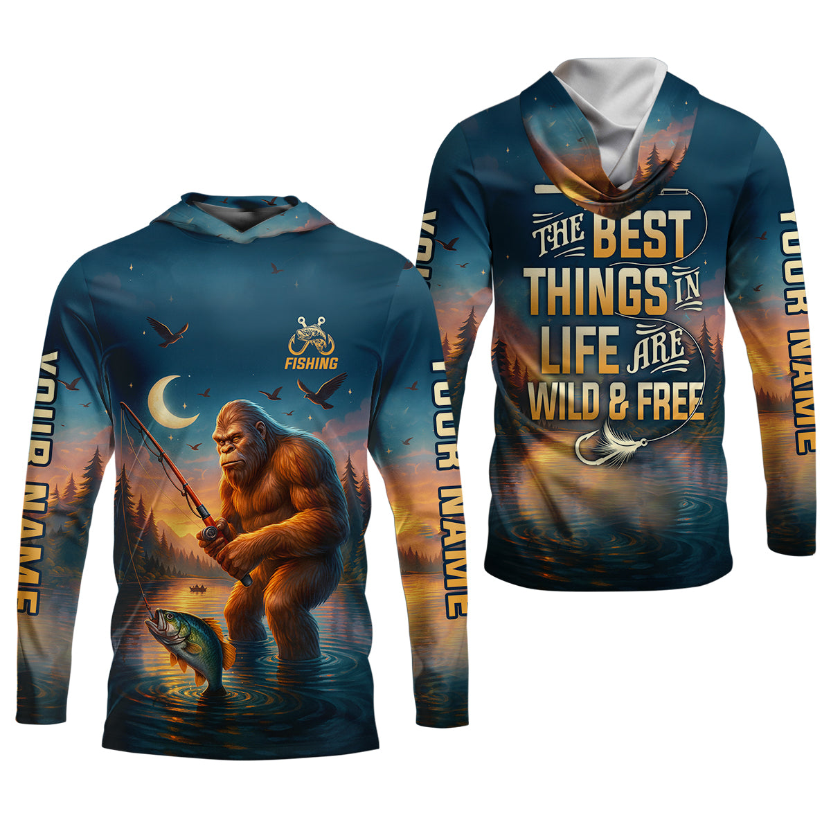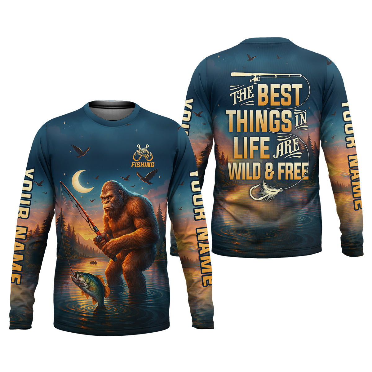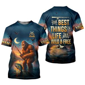 The Best Things In Life Are Wild And Free Funny Bigfoot Fishing SPF Shirt For Men, Gift For Fisherman
