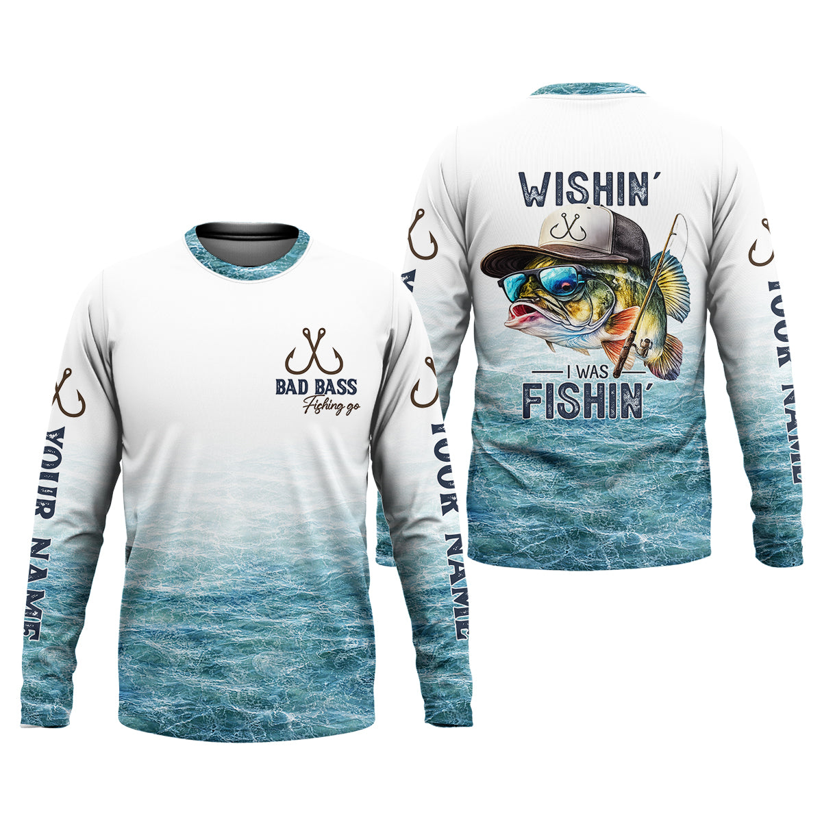 Wishin’ I Was Fishin’ Shirt, Personalized Bad Bass Fishing Shirt For Men, Fishing UPF Shirts