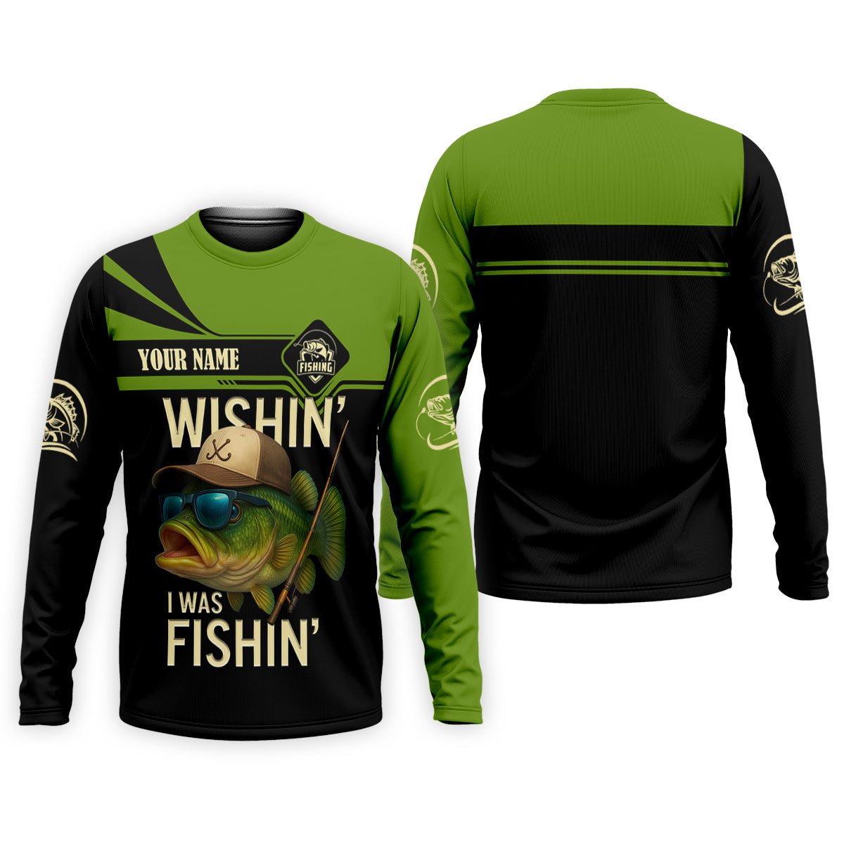 Wishing I Was Fishing Funny Fishing Shirt, Bass Fishing Shirt, SPF Shirt For Men, Men's Fishing Shirt